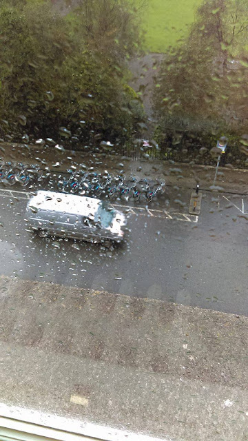 It rained the whole day Thursday, (Today) but by 2 PM, it was not just windy and rainy, it was insane. You could hear the wind hit against the house, through the chimneys, and just through the walls. It was raining so hard also. I tried to open one of the windows in my Piano Room while it was raining, and just an inch of lifting up the window, a ton of wind blew into the house sweeping all of the little pieces of paper that were on the ground from working on my project all over. Also got a little bit of rain on the window sill inside, but I immediately shut it so it stopped. Here is some pictures of the rain and wind.